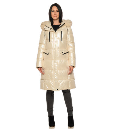 Μακρύ μπουφάν με φυσική γούνα στην κουκούλα αποσπώμενη κουκούλα. -