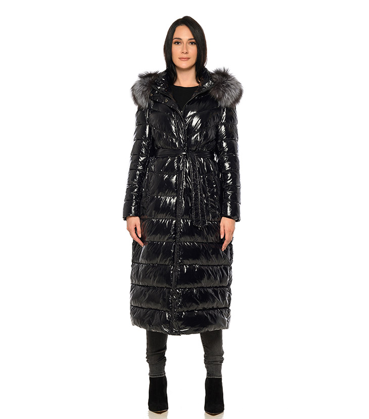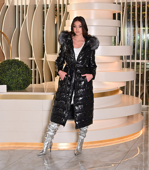 Μακρύ βινίλ μπουφάν, με ζώνη στην μέση