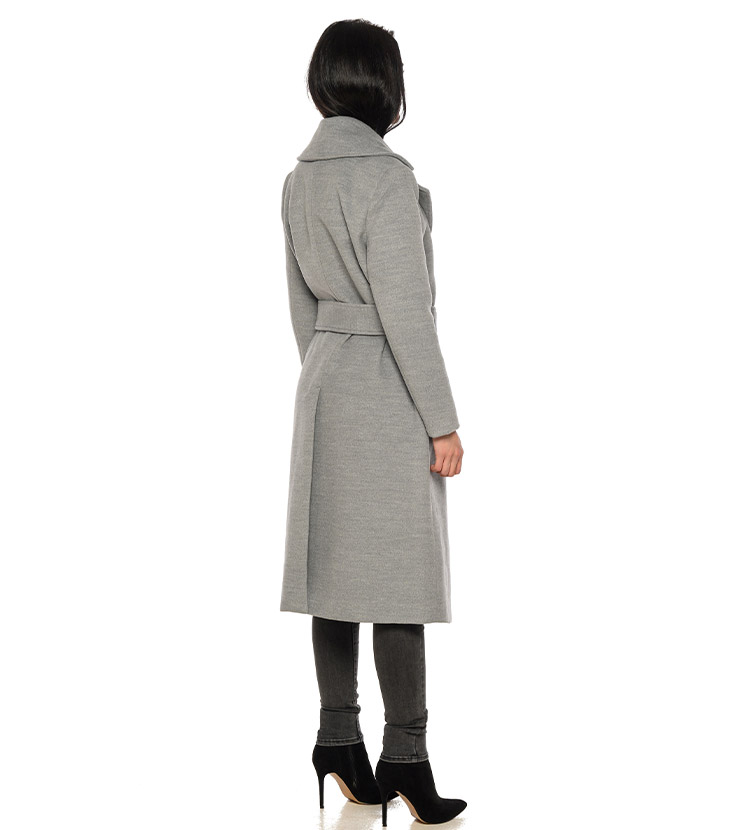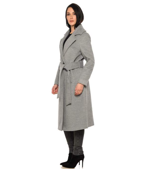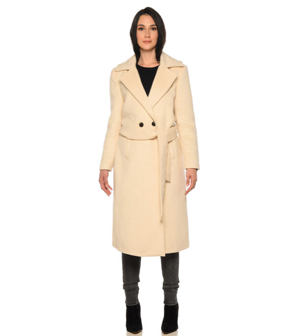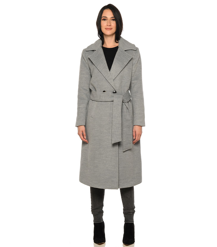 Μακρύ παλτό με σταυρωτό κούμπωμα και ζώνη στη μέση